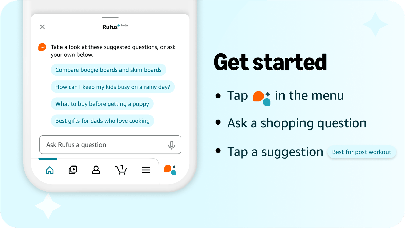 To start using Rufus, U.S. customers need to ensure their Amazon Shopping app is up-to-date. They can then tap the Rufus icon (chat bubbles with sparkle) in the navigation bar at the bottom of the screen to begin a conversation.
