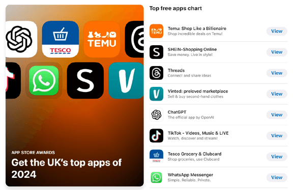 Temu Tops UK iPhone Downloads for 2024